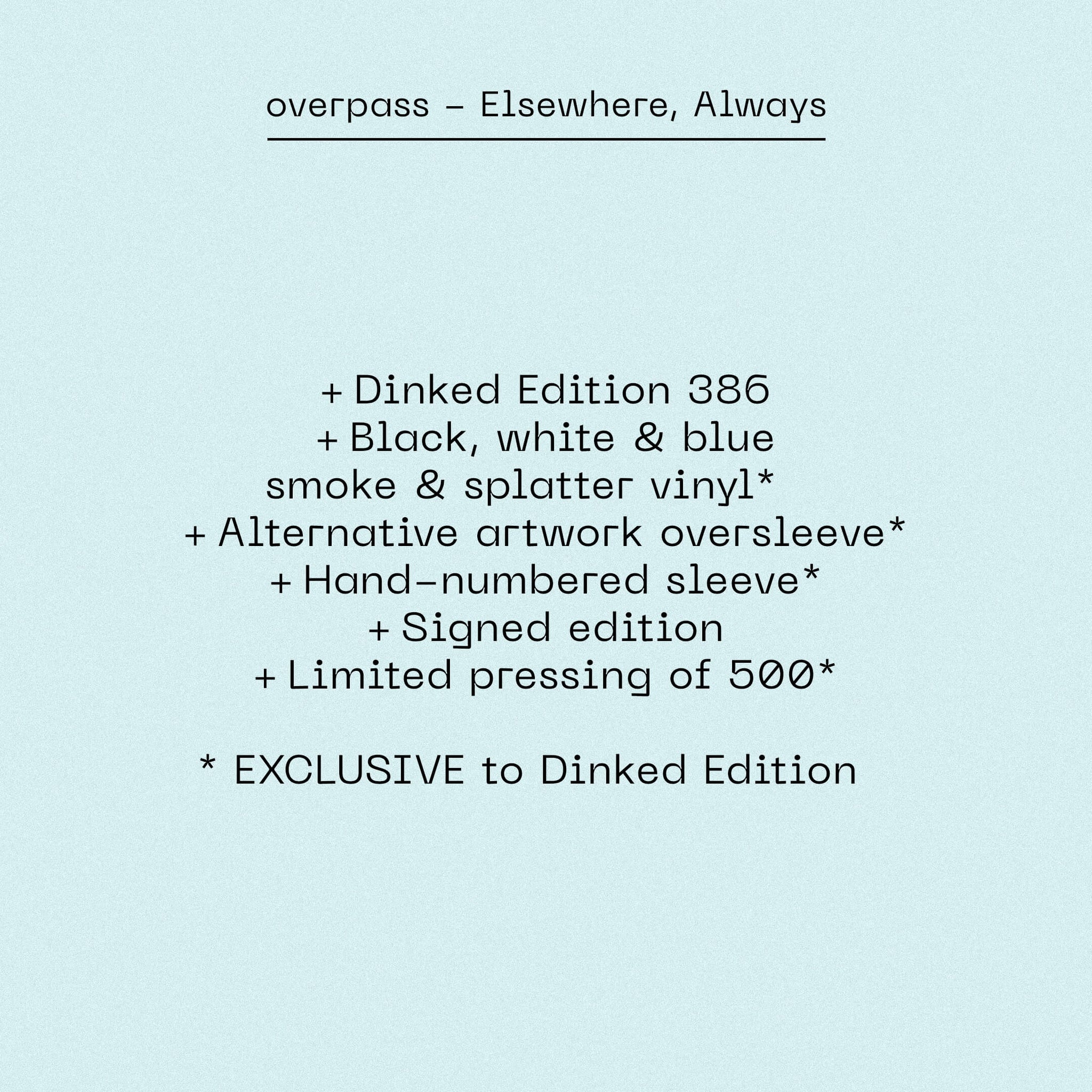 CD / Transparent Turquoise LP / Ltd Dinked Edition No. 386