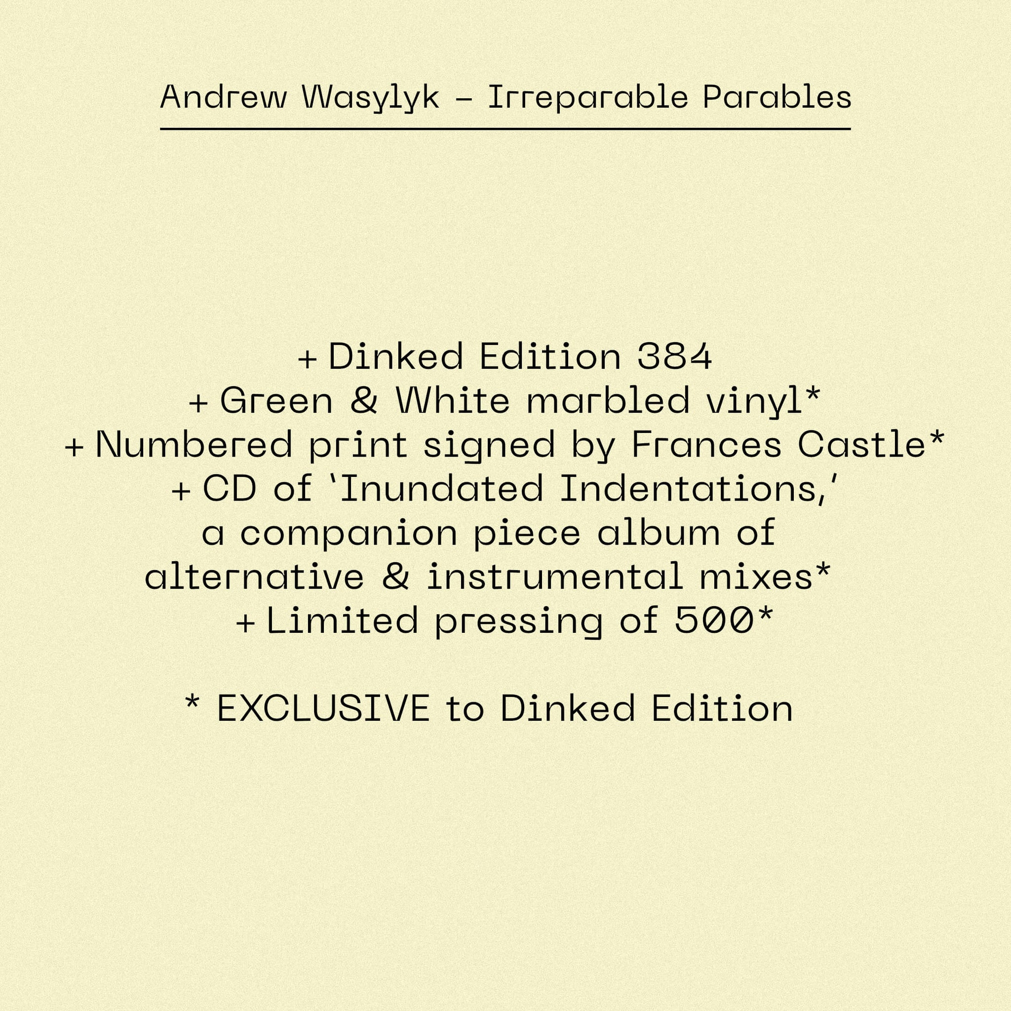 For his new album, Irreparable Parables, Andrew Wasylyk felt a strong desire to write a set of songs featuring an element hitherto rare in his work: the human voice. Equally strong was the conviction that he did not want to sing them himself.