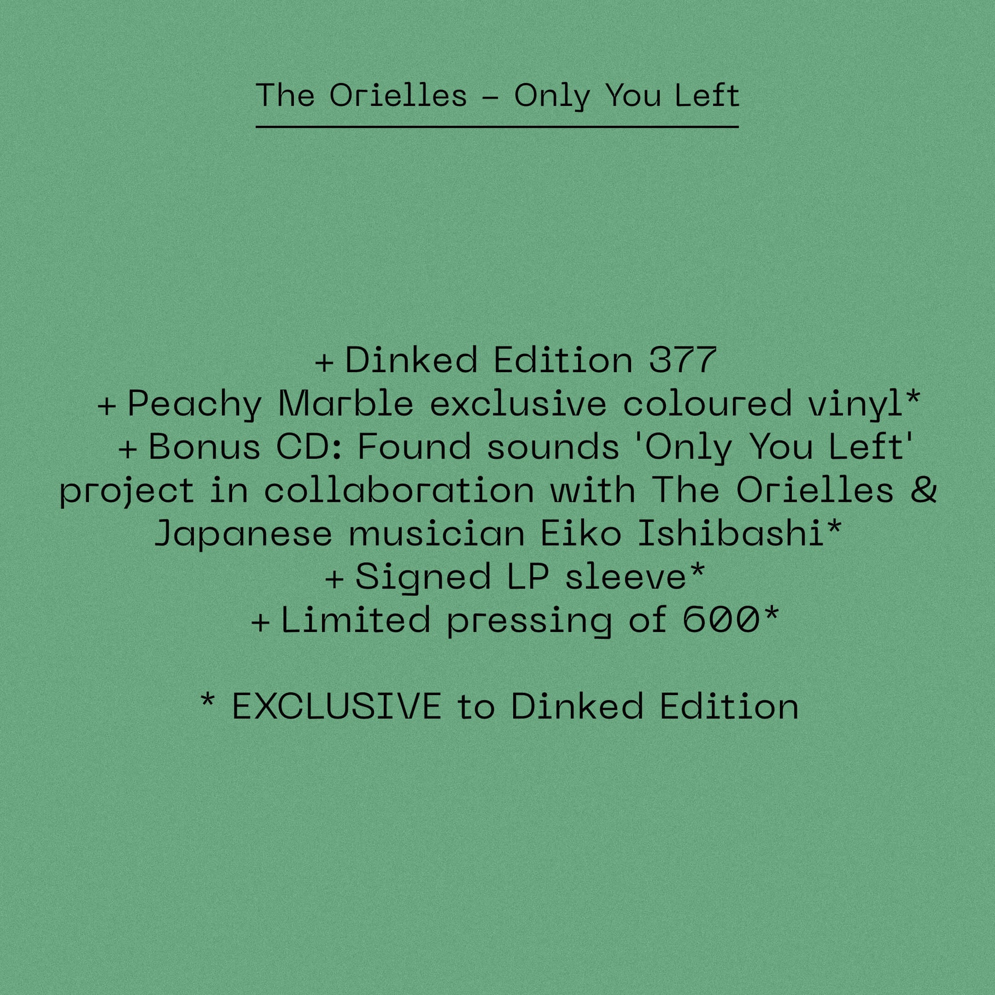 Bonus CD: Field Recording Project 'Only You Left' project in collaboration with The Orielles & Japanese musician Eiko Ishibashi