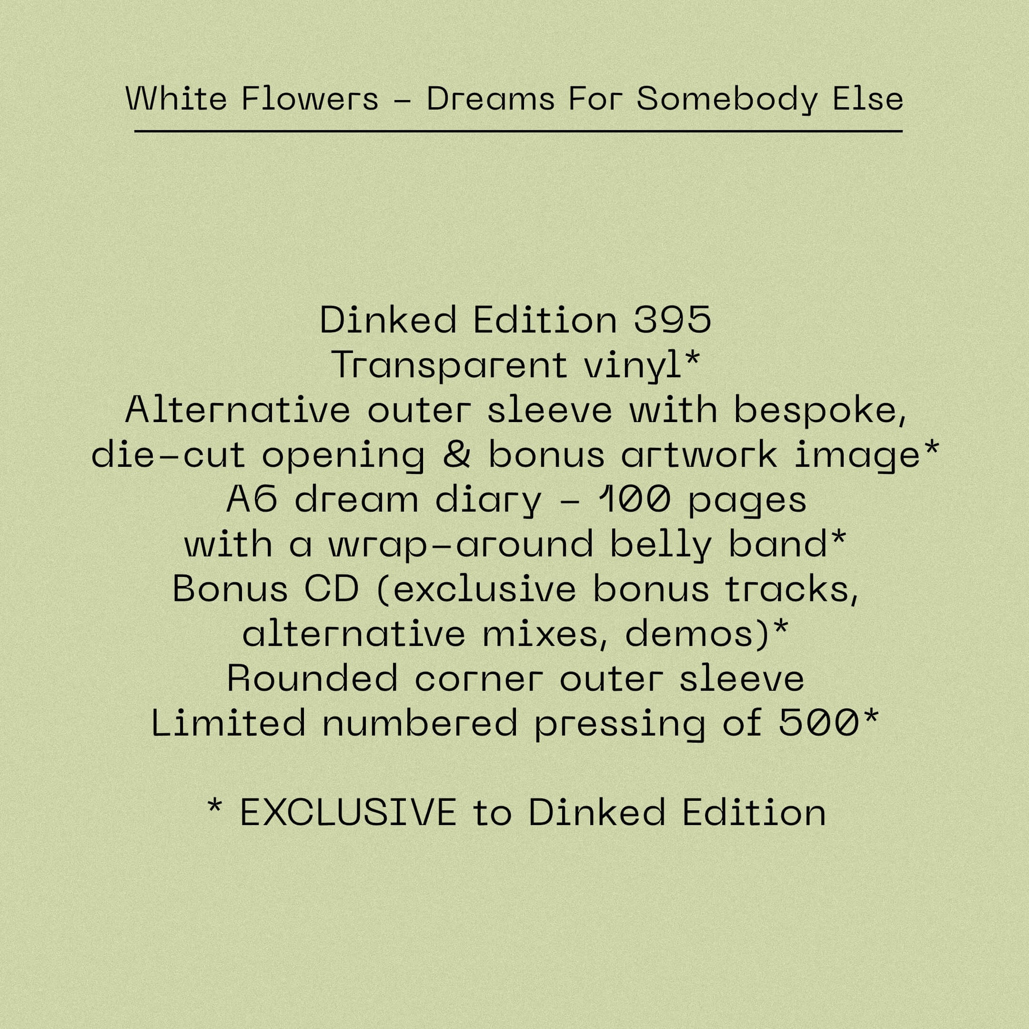 In true White Flowers tradition, their new album ‘Dreams For Somebody Else’ is bound by its own set of shining coincidences. In 2017, they shared a “spiritual” moment seeing LCD Soundsystem at Primavera. The experience festered in their collective consciousness, and they sought to one day write something that conjured the feeling of the set. Eight years on, by a turn of fate, they were introduced to the band’s Al Doyle, who ended up co-producing the entire album, beginning with the closing track ‘Thinking Of You’, which was specifically inspired by the performance.