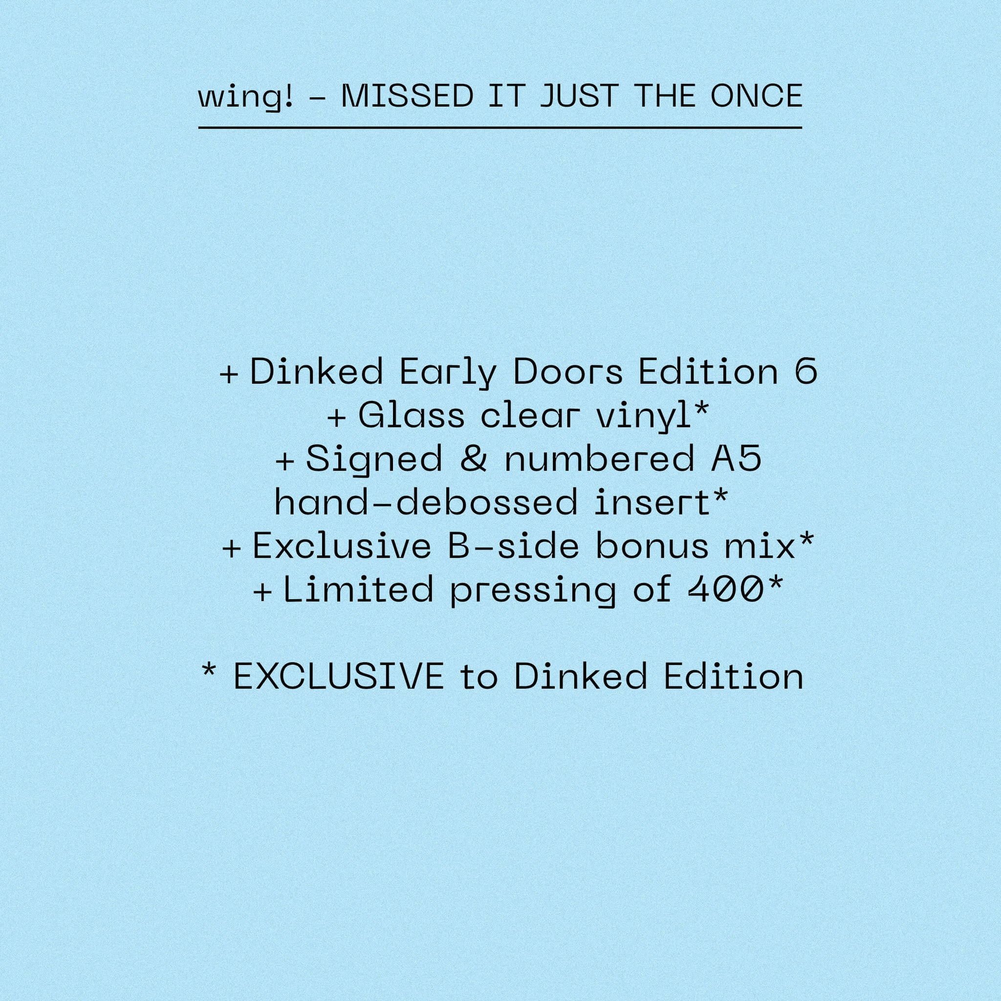 Emerging from a period of creative exploration and personal transformation, MISSED IT JUST THE ONCE marks a pivotal moment for wing!, the moniker of Bexleyheath born-and-raised producer Adam Swan. “This EP was a breath of fresh air for me,” he shares. “It was the first time I had multiple tracks I was proud of. The idea of having an EP to listen back to and be excited about was completely new to me.”